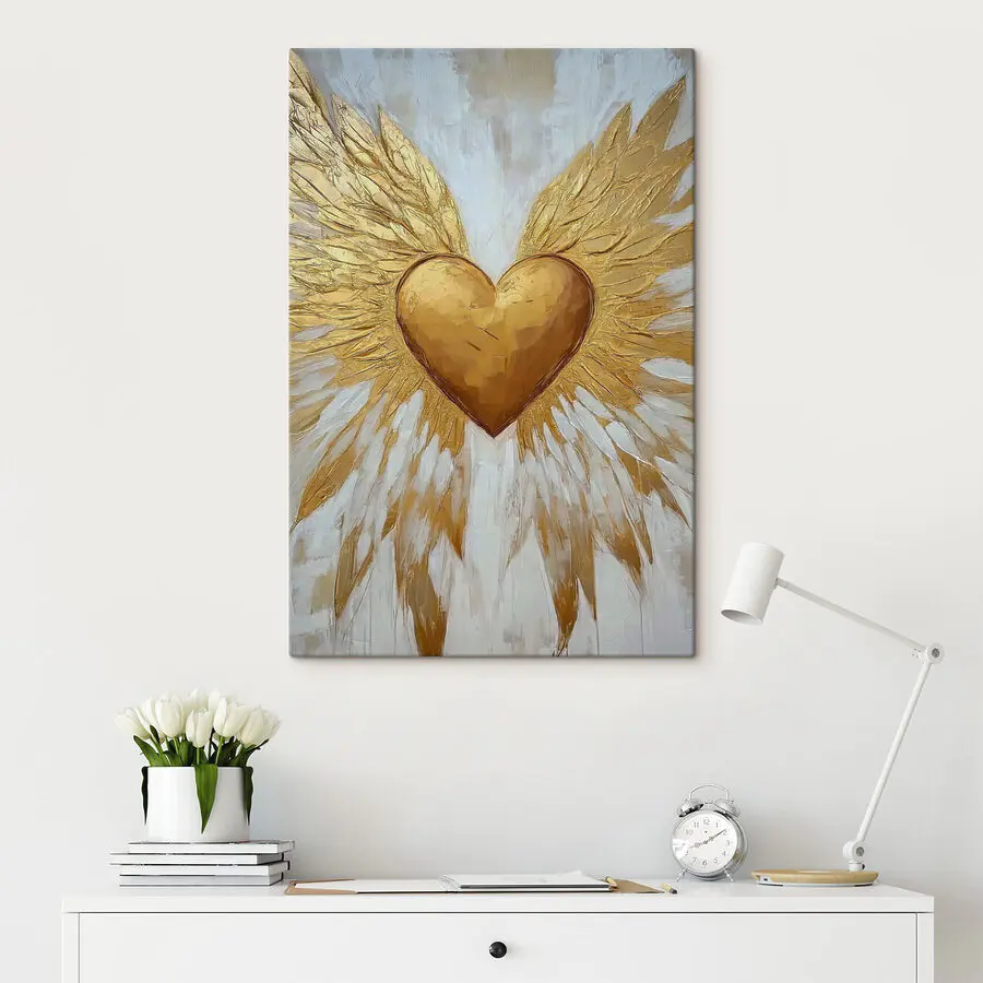 Canvas Schilderijen Hart met vleugels erop geschilderd