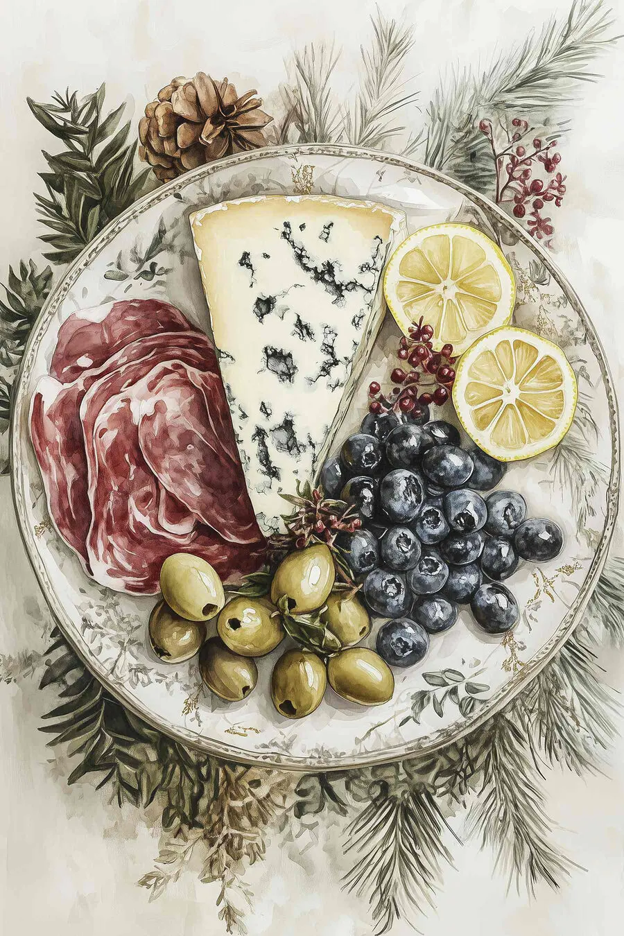 25.01 €15.00 €Canvas Schilderijen Bord eten met kaas en olijven