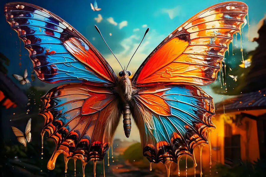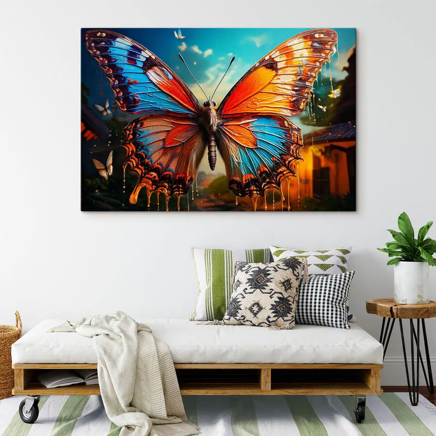 Canvas Schilderijen Vlinder met oranje en blauwe vleugels