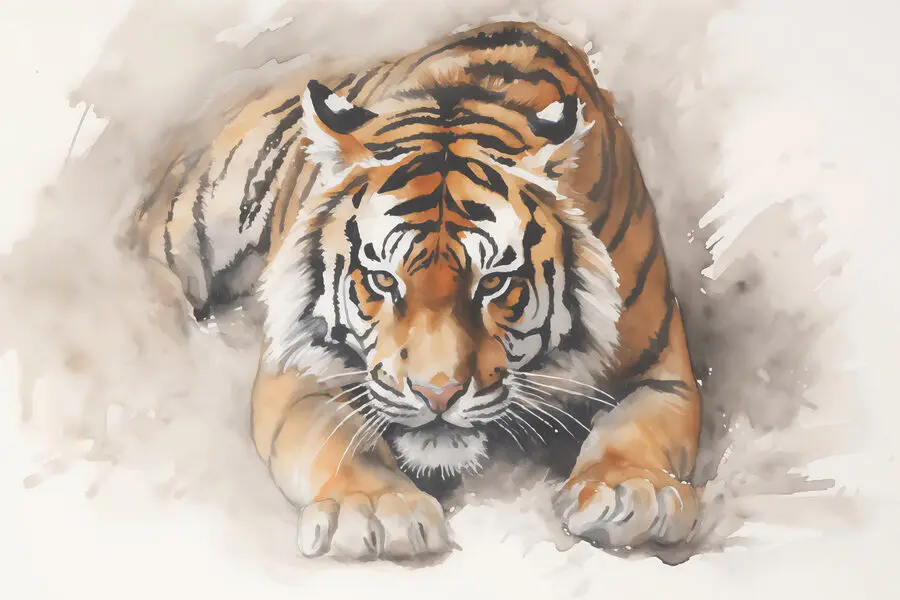 Canvas Schilderijen Aquarel van een liggende tijger