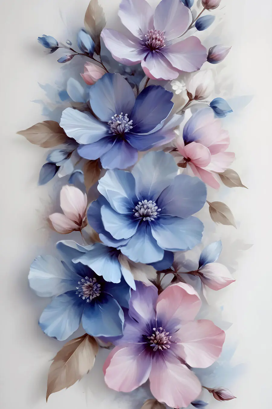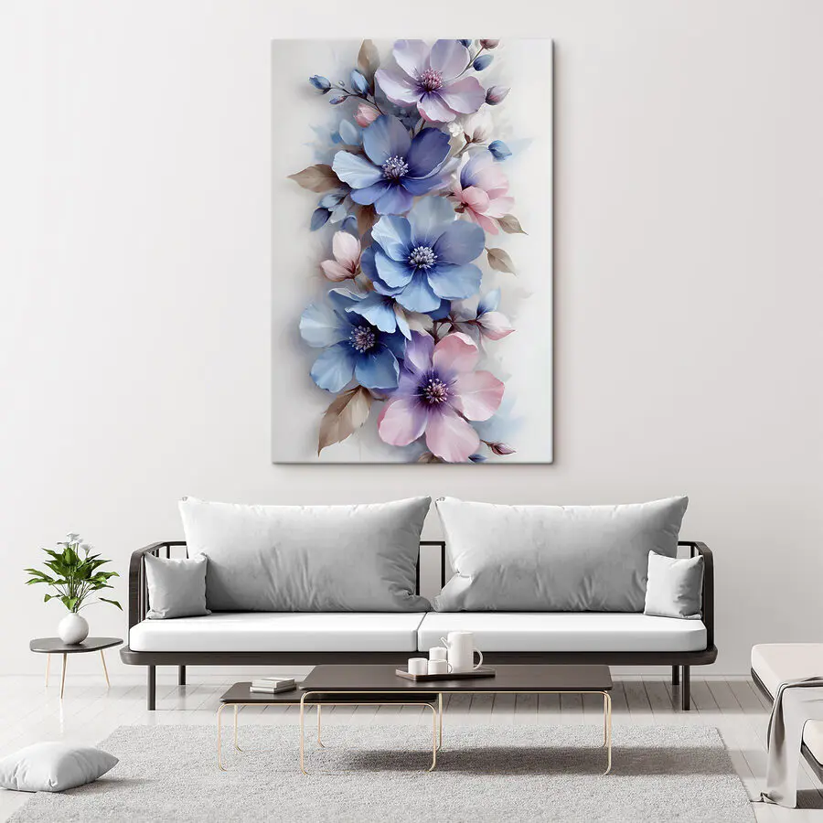 25.01 €15.00 €Canvas Schilderijen Een schilderij van bloemen op een blauwe achtergrond