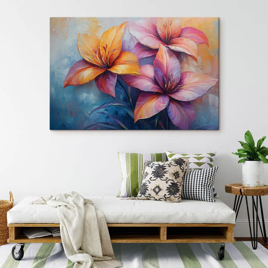 25.01 €15.00 €Canvas Schilderijen Een schilderij van bloemen op een wit oppervlak