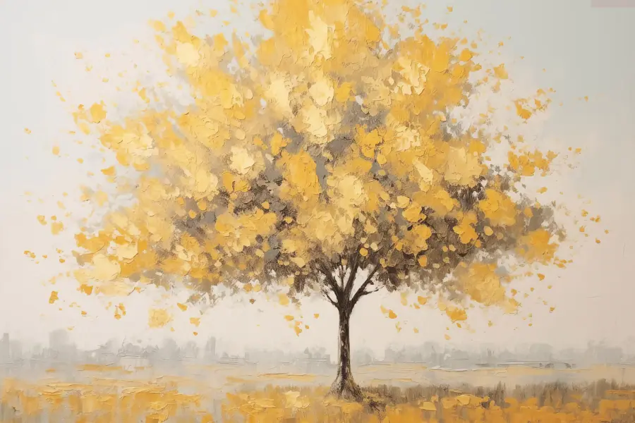 Canvas Schilderijen Schilderij van een boom met gele bladeren