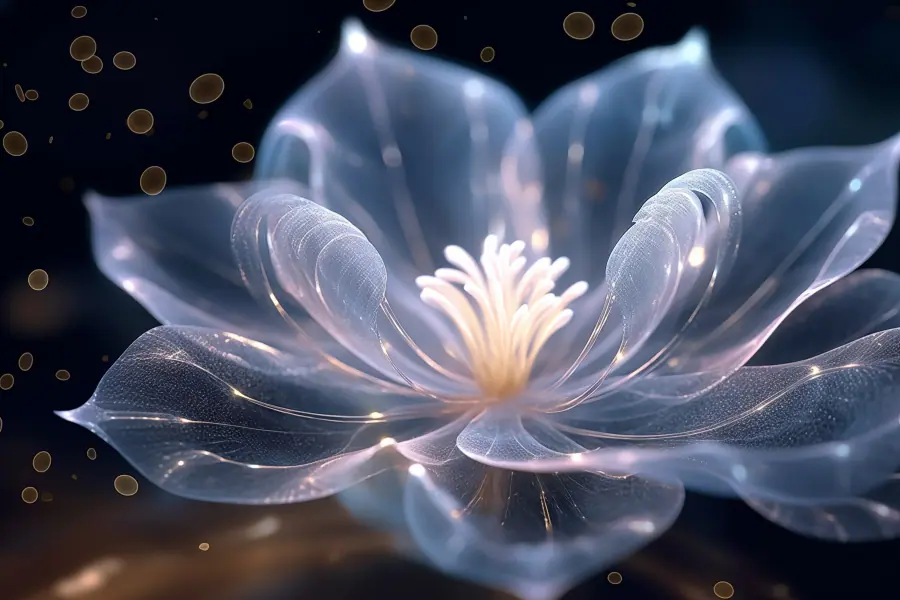 Canvas Schilderijen Transparante bloem met wit hart