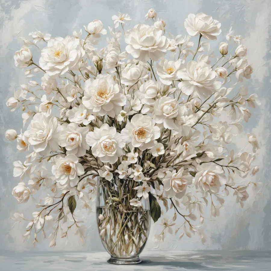 25.01 €15.00 €Canvas Schilderijen Elegant boeket van zachte witte bloemen
