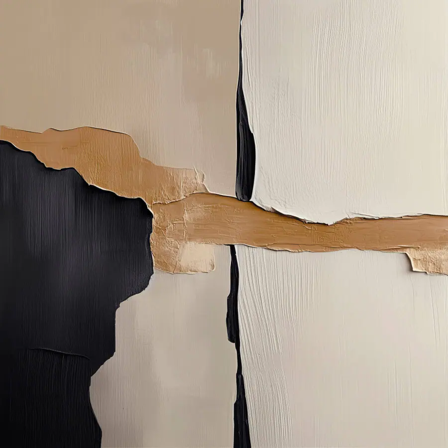 Canvas Schilderijen Zwart-witte muur met bruine strook