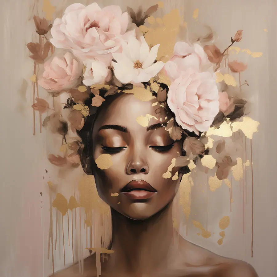 Canvas Schilderijen Schilderij van een vrouw met bloemen op haar hoofd