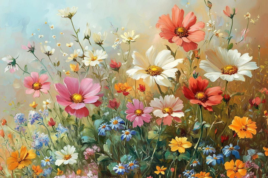 Canvas Schilderijen Schilderij van bloemen in een veld