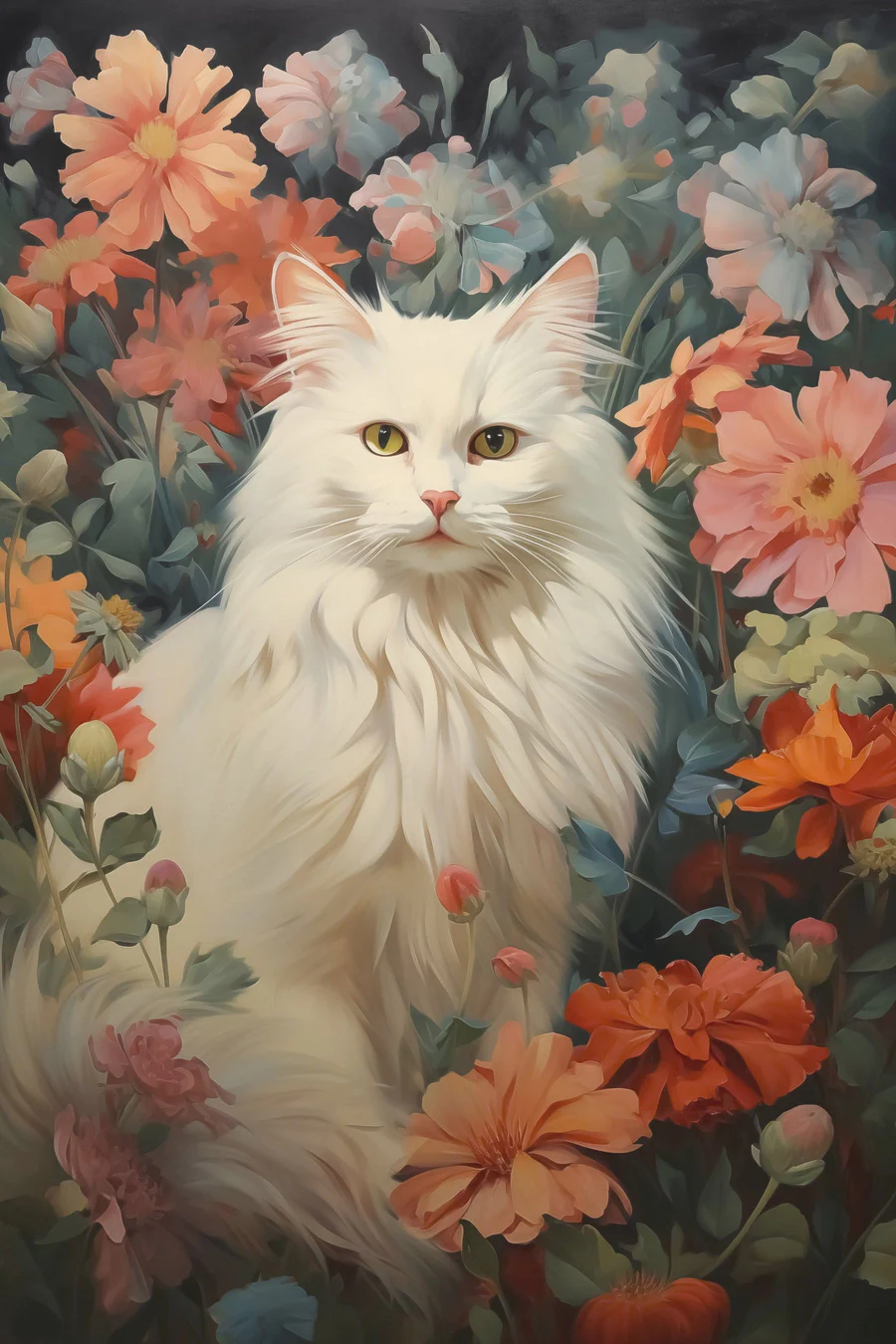 Deze canvasprint fleurt elke ruimte op en toont een betoverende witte kat die ligt te luieren in een levendige bloementuin. De rijke kleuren van bloeiende bloemen nodigen het hele jaar door uit tot een lentegevoel, waardoor het perfect is voor een gezellige woonkamer of een vrolijke slaapkamer. Stel je voor dat je koffie drinkt terwijl je naar deze pluizige kat staart en een moment van rust en vreugde deelt. Het is alsof je een stukje natuur met een vleugje eigenzinnigheid aan je muur hebt hangen. Over een gespreksstarter gesproken! Dit kunstwerk heeft een serene sfeer die prachtig past bij elke interieurstijl.