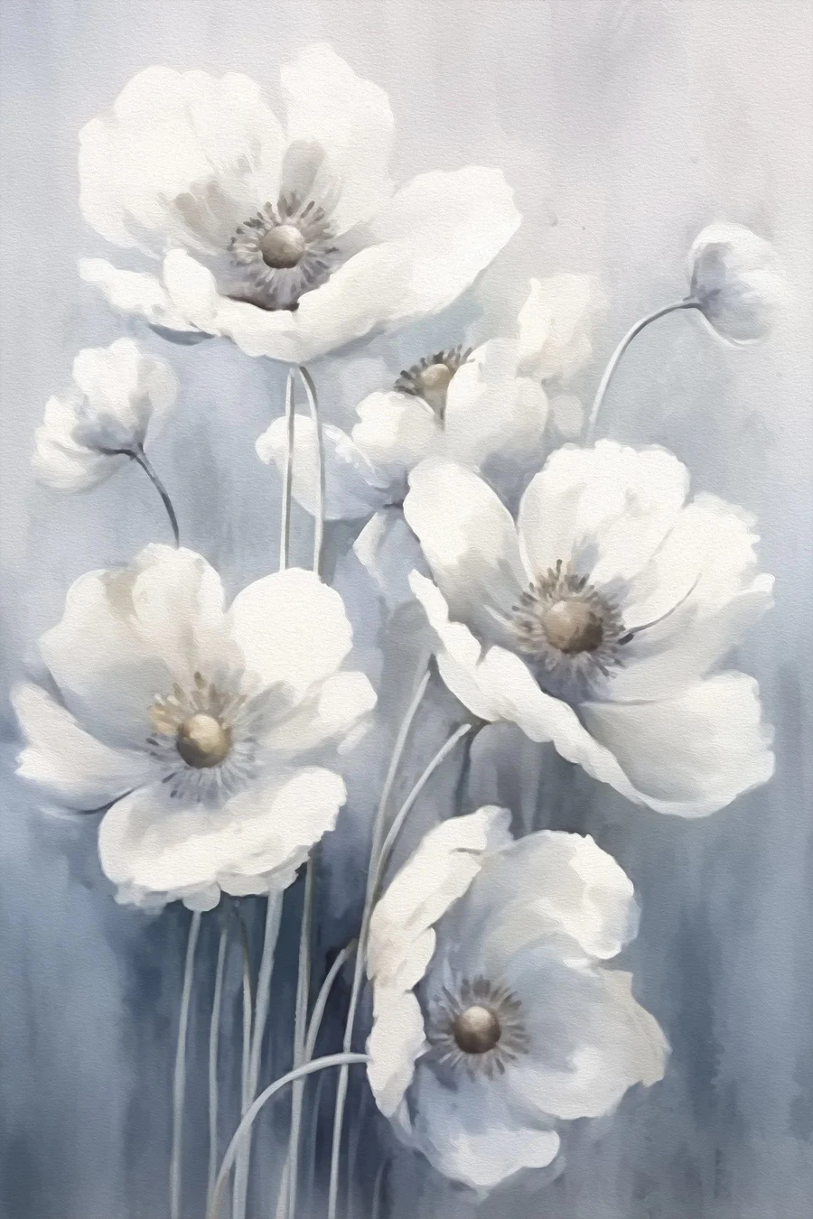 25.01 €15.00 €Canvas Schilderijen Een schilderij van bloemen op een grijze achtergrond