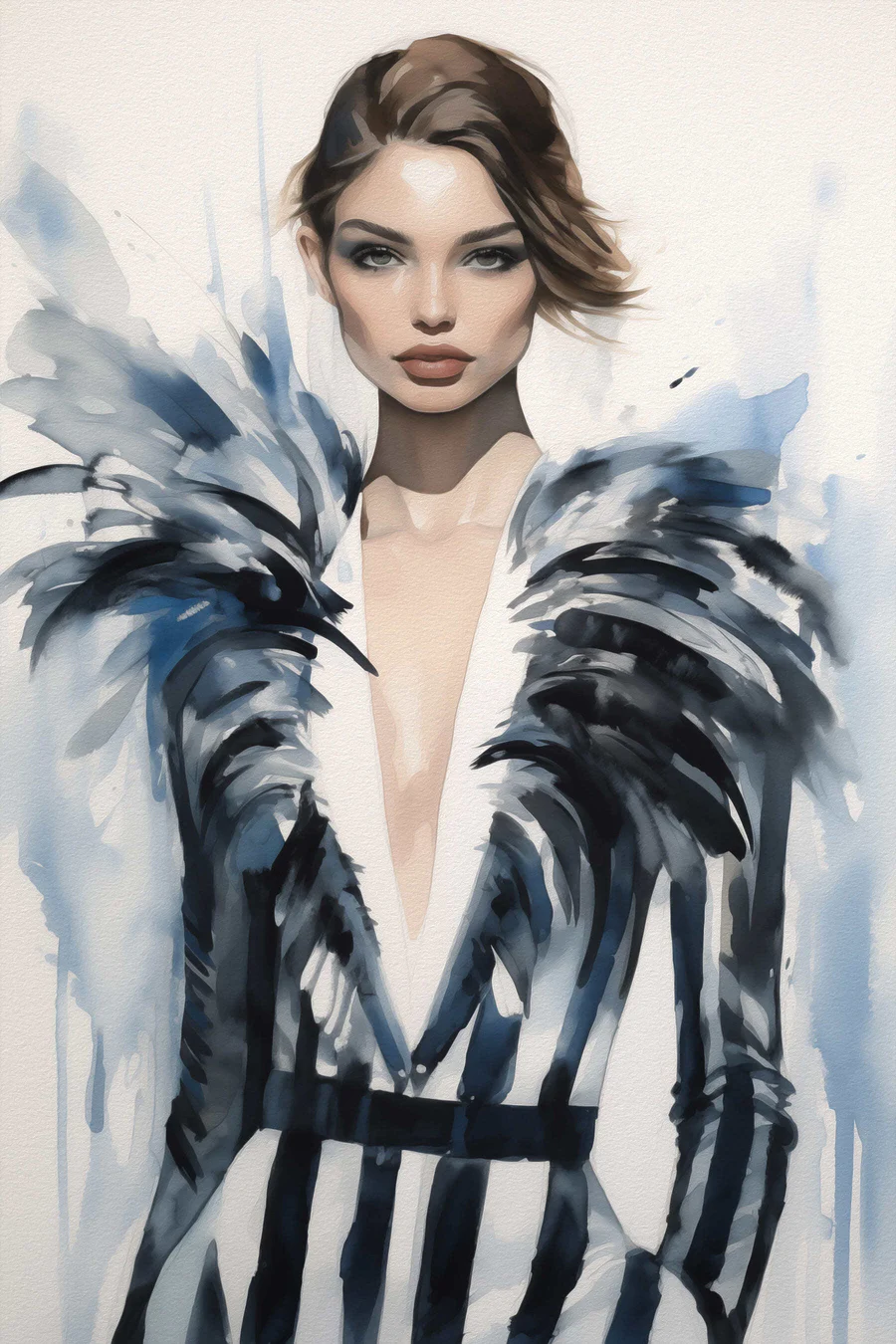 Canvas Schilderijen Vrouw in een zwart-witte jurk