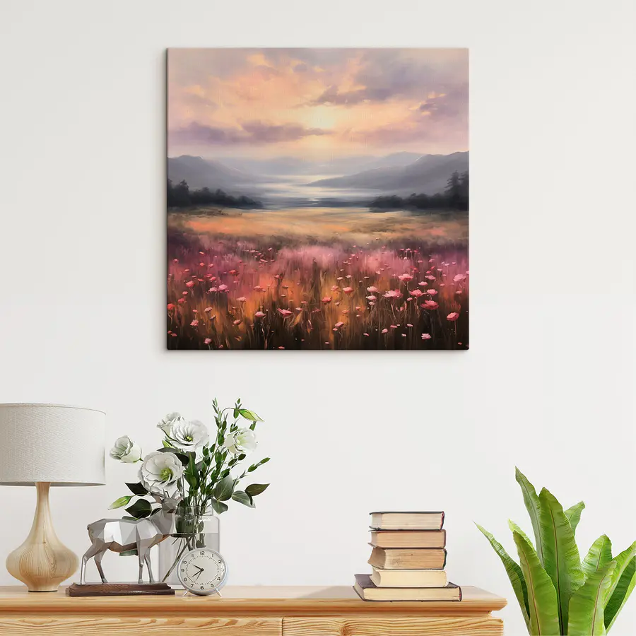 25.92 €14.25 €Canvas Schilderijen Bloemenveld met bergen op de achtergrond