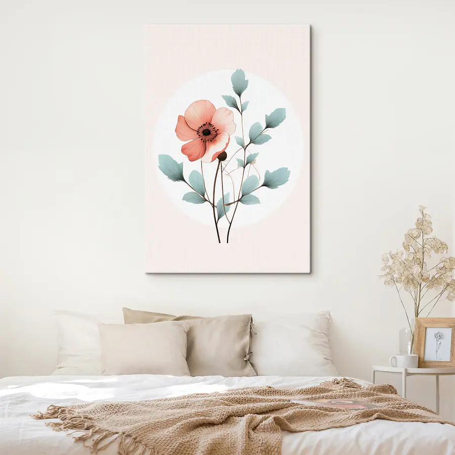 Canvas Schilderijen Bloem met bladeren aan een stengel