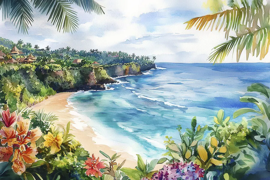 Canvas Schilderijen Aquarel van een strand en oceaan