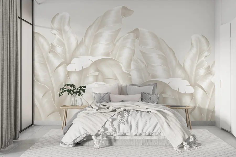16.92 €9.30 €Fotobehang Witte bladeren op een grijze achtergrond