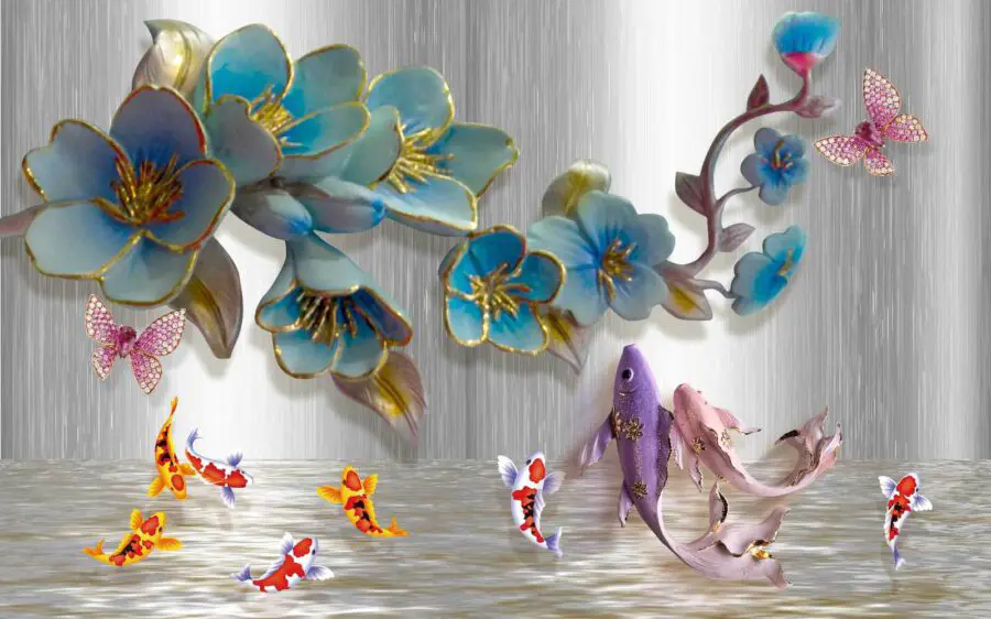 15.51 €9.30 €Fotobehang Schilderij van bloemen en bladeren