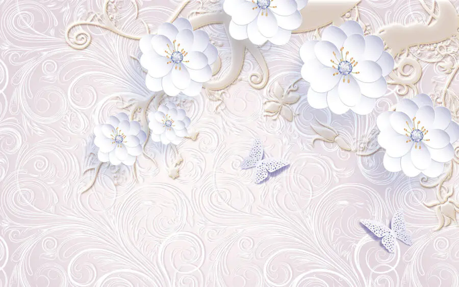 15.51 €9.30 €Fotobehang Witte bloemen en vlinders in een kamer