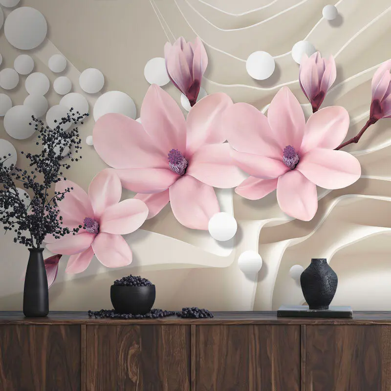 16.08 €8.85 €Fotobehang Roze bloemen en witte bloemen
