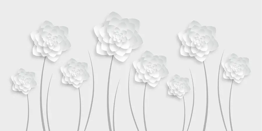 Fotobehang Witte papieren bloemen op een witte achtergrond