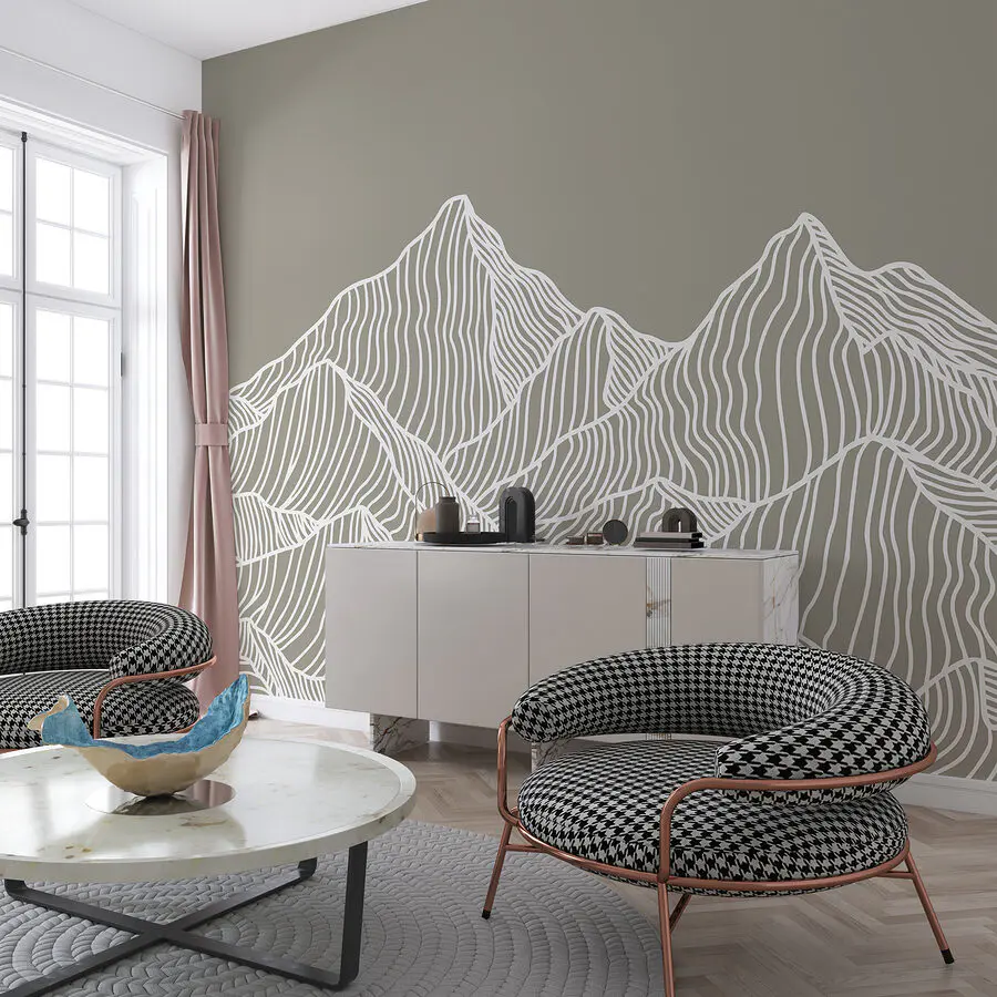 Fotobehang Een wit lijnenspel van bergen