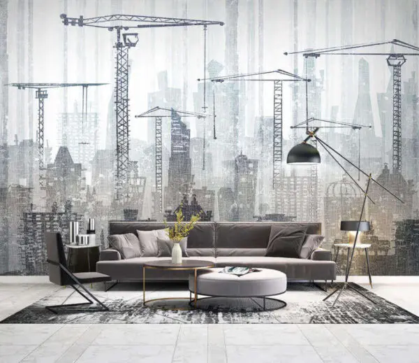 16.31 €9.79 €Fotobehang Groep kranen in een stad
