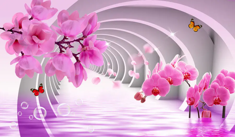 16.08 €8.85 €Fotobehang Roze bloemen en witte bloemen