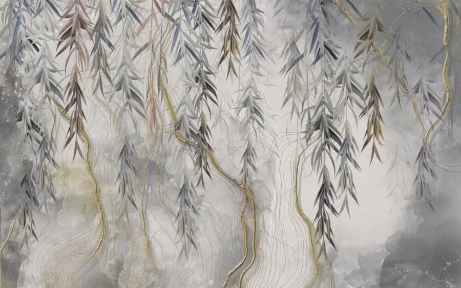 15.51 €9.30 €Fotobehang Witte bladeren op een grijze achtergrond