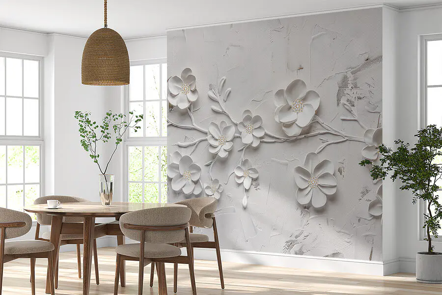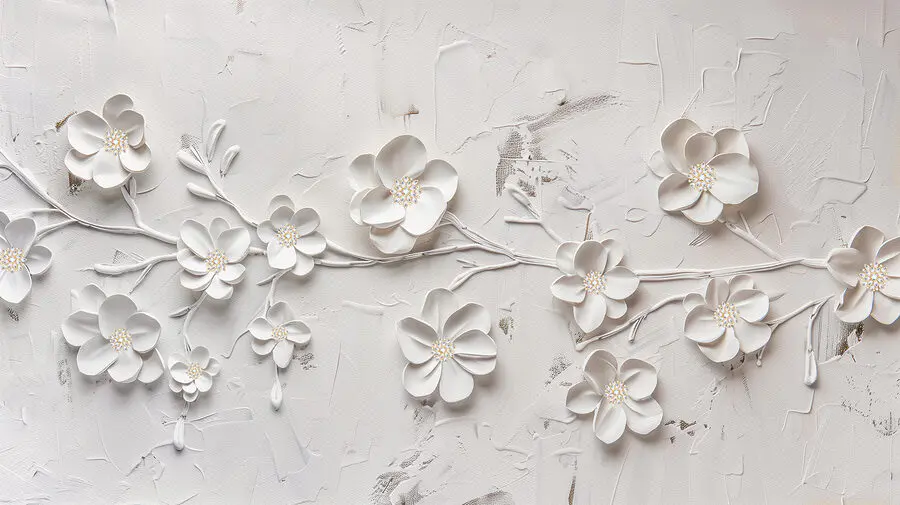 15.51 €9.30 €Fotobehang Snijwerk van witte bloemen op een muur