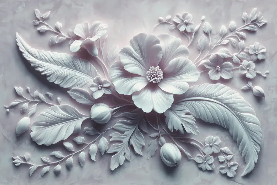 Fotobehang Witte bloem en bladeren