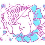Fotobehang Tekening van een vrouw met bloemen