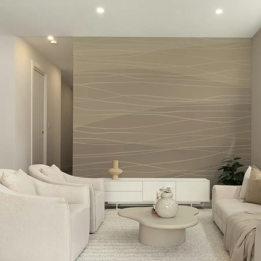Fotobehang Bruine en witte golvende lijnen