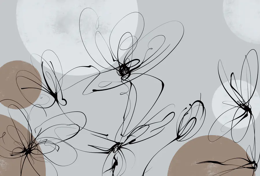 Fotobehang Tekening van bloemen met cirkels en stippen
