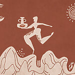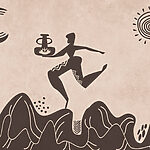 Fotobehang Tekening van een man met een pot en een pot op een berg