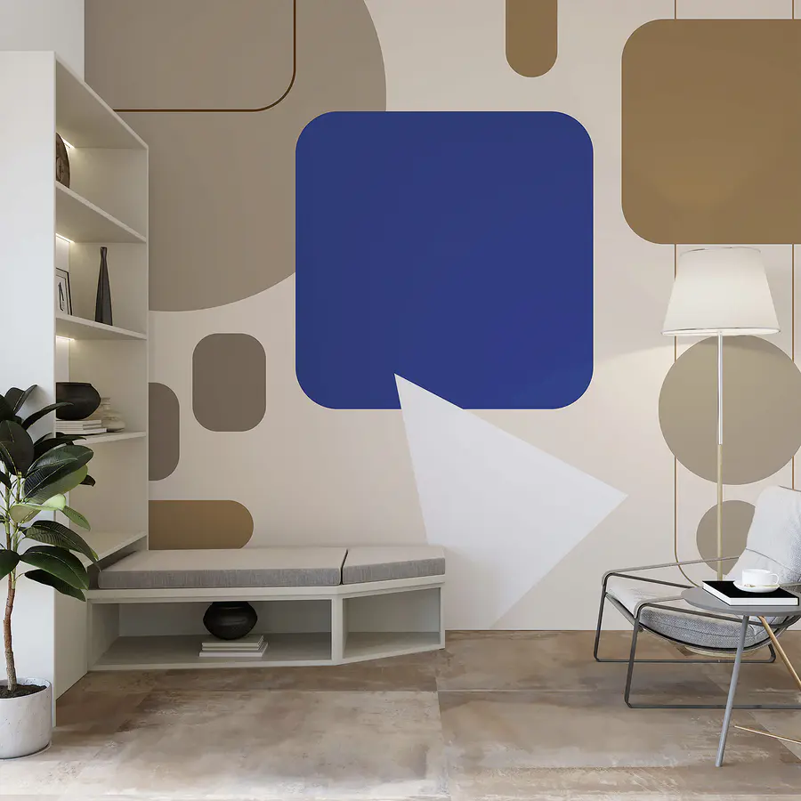 Fotobehang Blauwe en bruine vierkanten en een witte pijl