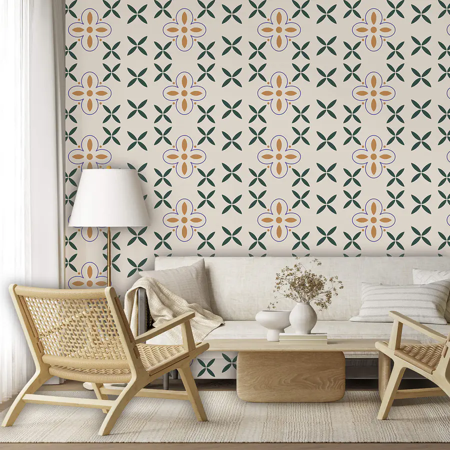 - Behang met verschillende kleuren op verschillende tegels