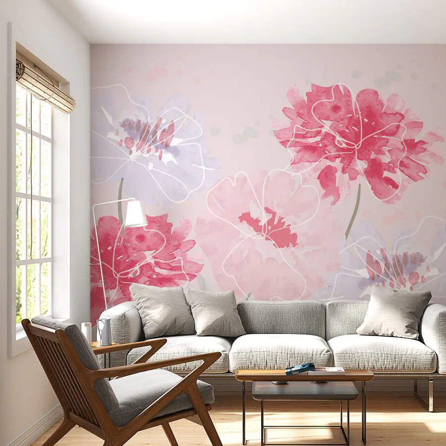 Stel je voor dat je een kamer binnenloopt die aanvoelt als een zachte omhelzing. Deze muurschildering "Groep bloemen op een roze achtergrond" is precies dat: een lief tuinfeestje op je muur. Zachte pasteltinten fluisteren 'relax' terwijl speelse bloemen over het oppervlak dansen. Het is als een ochtendwandeling door een bedauwde weide, waar zorgen wegsmelten. Perfect om verhaaltjes op te verzinnen of gewoon te dagdromen! Breng een vleugje aquarel elegantie in je interieur en zie het veranderen in een heiligdom van rust en creativiteit.
