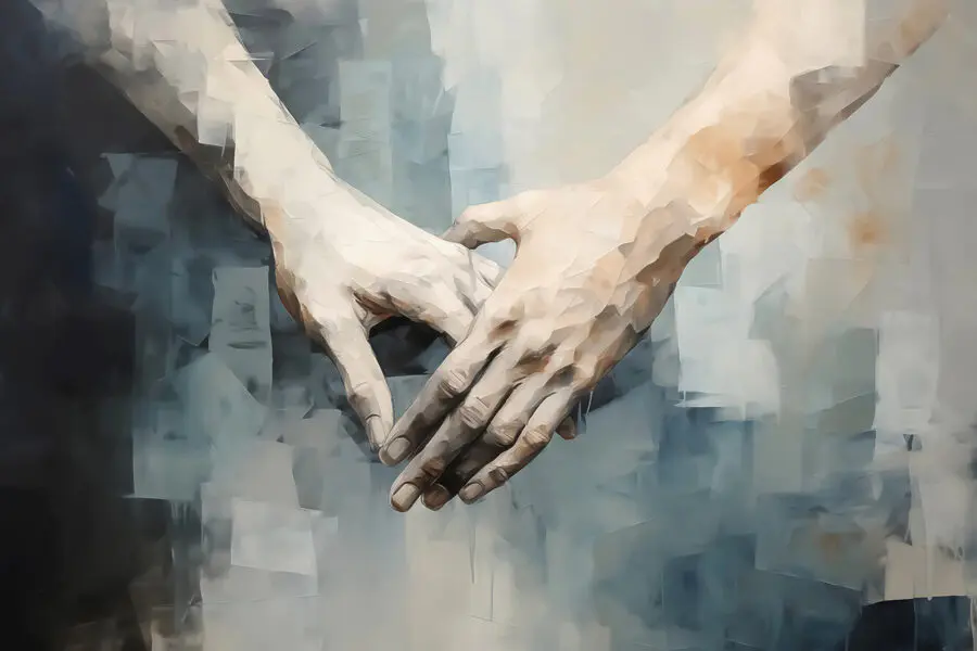 Fotobehang Het aanraken van handen verbindt in eenheid