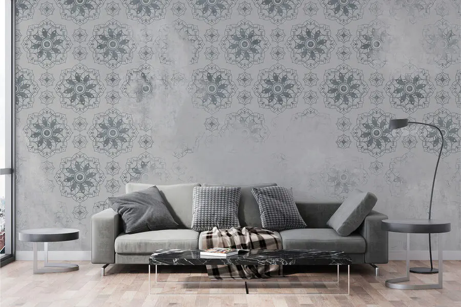 Fotobehang Grijs en wit behang met een patroon