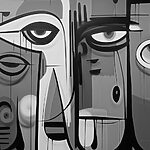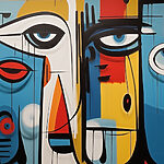 Fotobehang Kleurrijk kunstwerk met verschillende gezichten