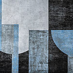 Fotobehang Een zwart met blauw en wit kunstwerk