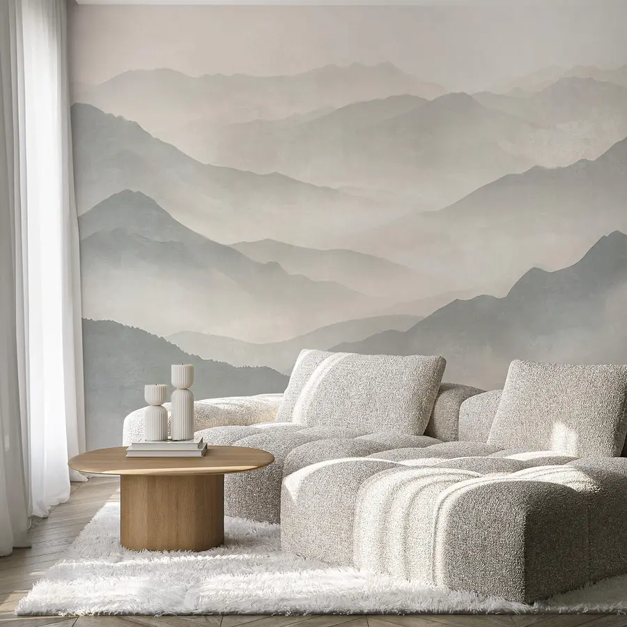 16.31 €9.79 €Fotobehang Landschap van bergen met bomen en mist
