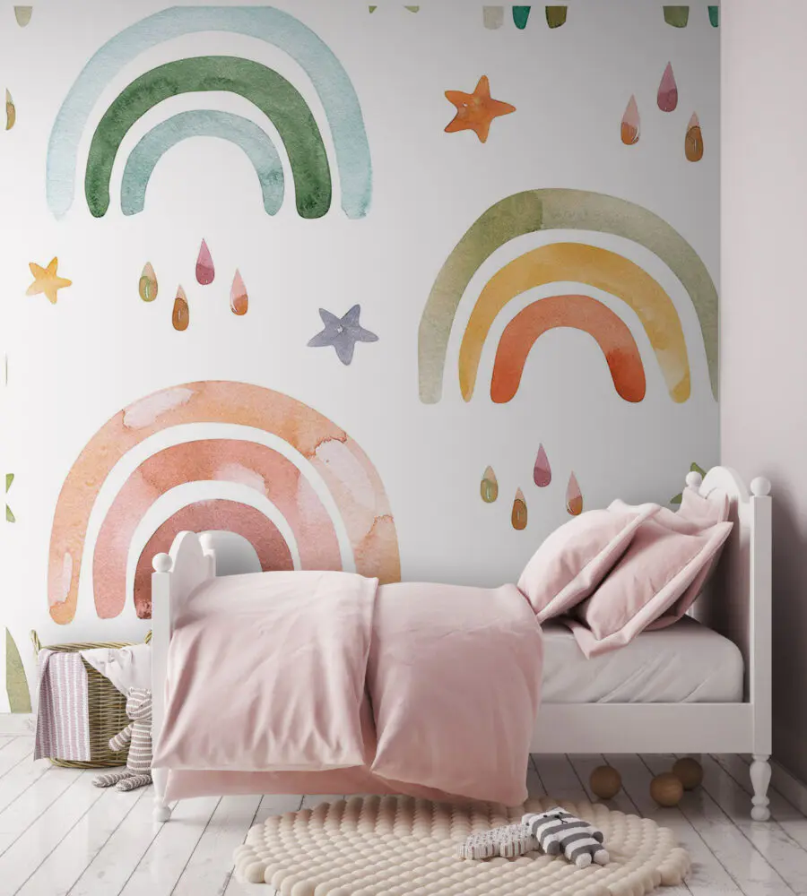 Fotobehang Patroon van waterverf regenbogen en sterren
