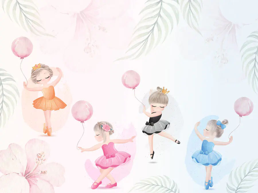 15.51 €9.30 €Fotobehang Roze en wit stadslandschap met roze ballonnen en vliegende vogels