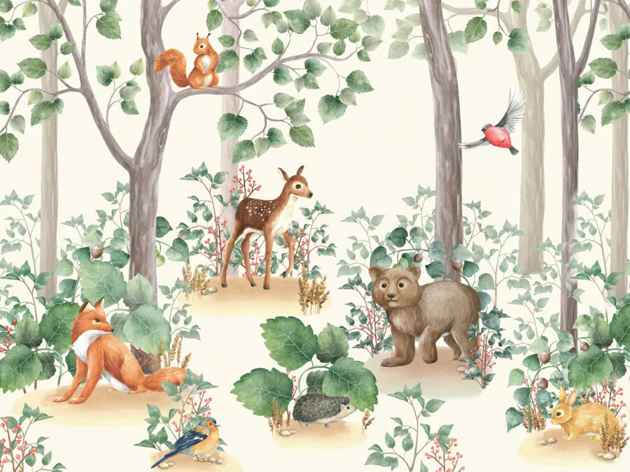 15.51 €9.30 €Fotobehang Aquarel van dieren in het bos