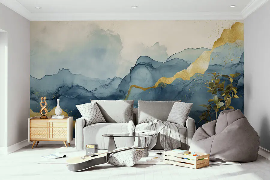 15.51 €9.30 €Fotobehang Elegante abstracte aqua en metallic kunst