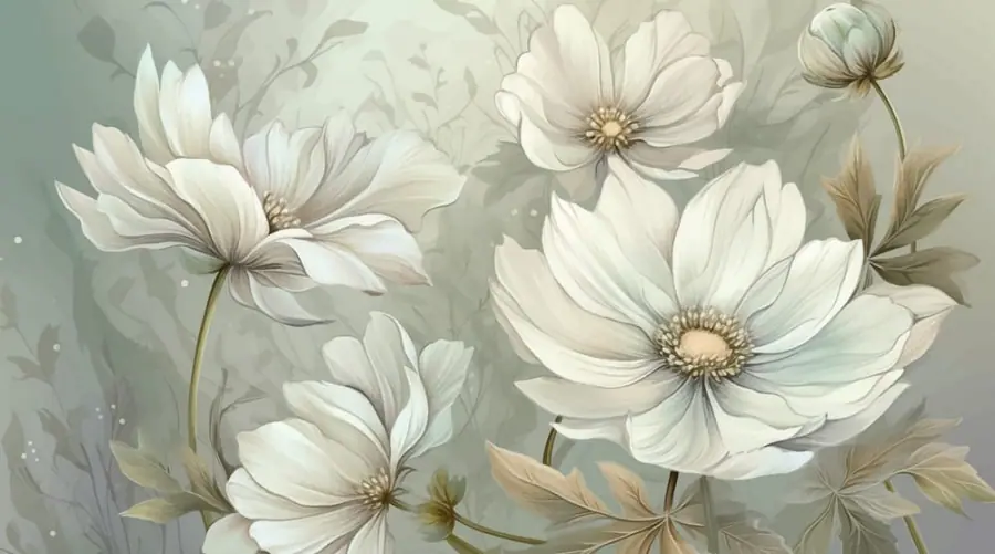Stel je eens voor dat je een kamer binnenstapt waar tere bloemen op de muren lijken te dansen, hun serene tinten die ontspanning uitstralen. Deze muurschildering is niet zomaar decoratie; het is een uitnodiging om even stil te staan, adem te halen en de chaos van de dag te laten verdwijnen. De zachte kleuren en zachte patronen geven ruimtes een licht en luchtig gevoel, bijna alsof je door een lentetuin wandelt. Perfect voor een gezellig hoekje of een inspirerende werkplek. Stel je voor dat je koffie drinkt terwijl je naar deze bloemen staart en je met elke blik een beetje serener voelt. Het is als de natuur, maar dan zonder allergieën.