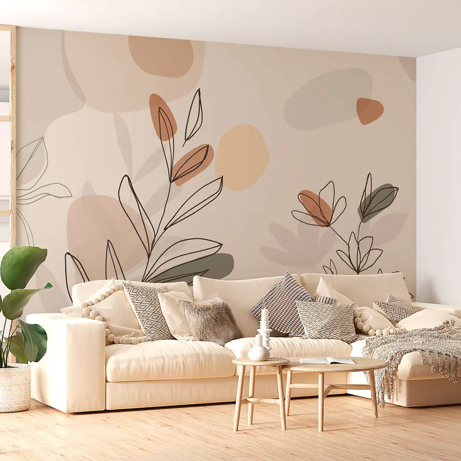 Fotobehang Tekening van bladeren en bloemen