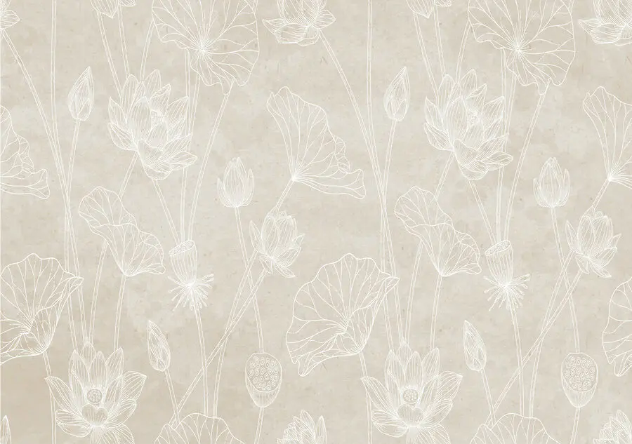 Fotobehang Witte lijntekening van bloemen