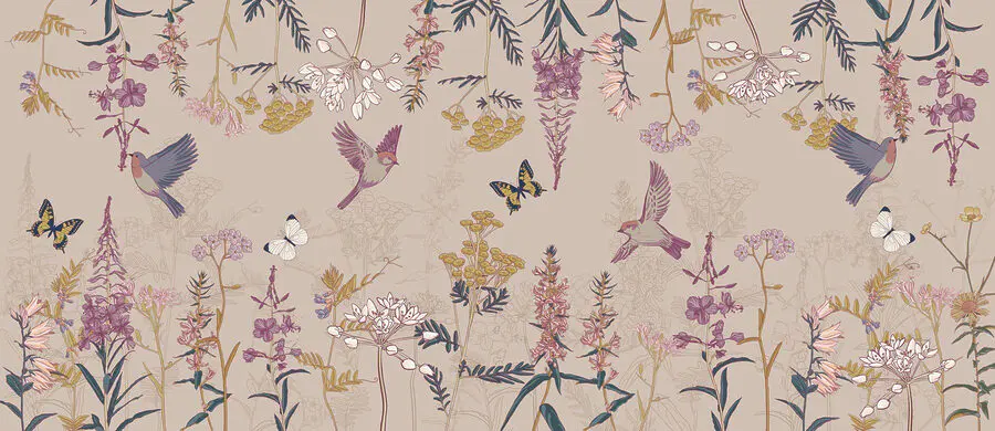 15.51 €9.30 €Fotobehang Schilderij van bloemen en vlinders