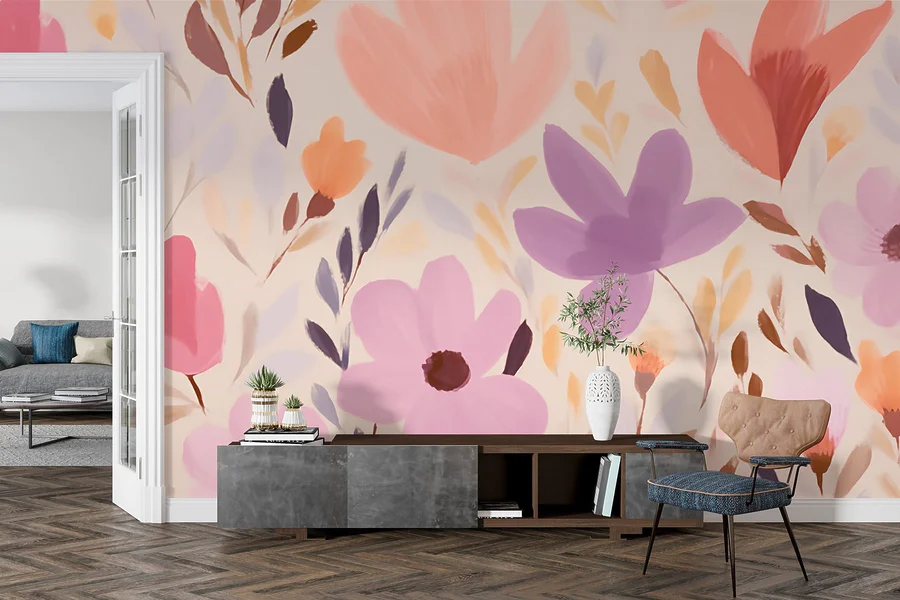16.08 €8.85 €Fotobehang Schilderij van bloemen op een muur